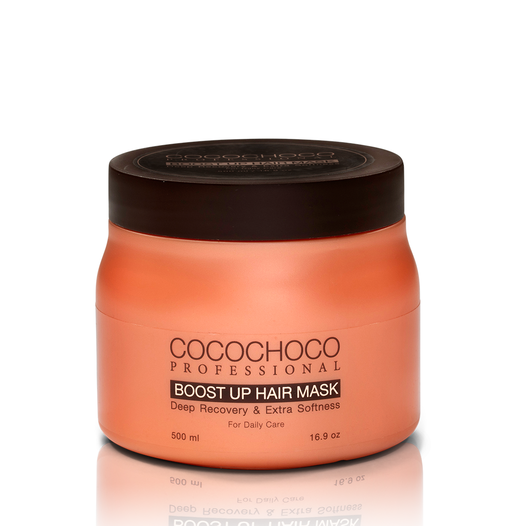 Cocochoco Boost-up hair mask is Intensive moisture treatment for hair-healing, Ultra-moisturizing deep conditioner, Effective in restoring root volume. Safe for color-treated hair.